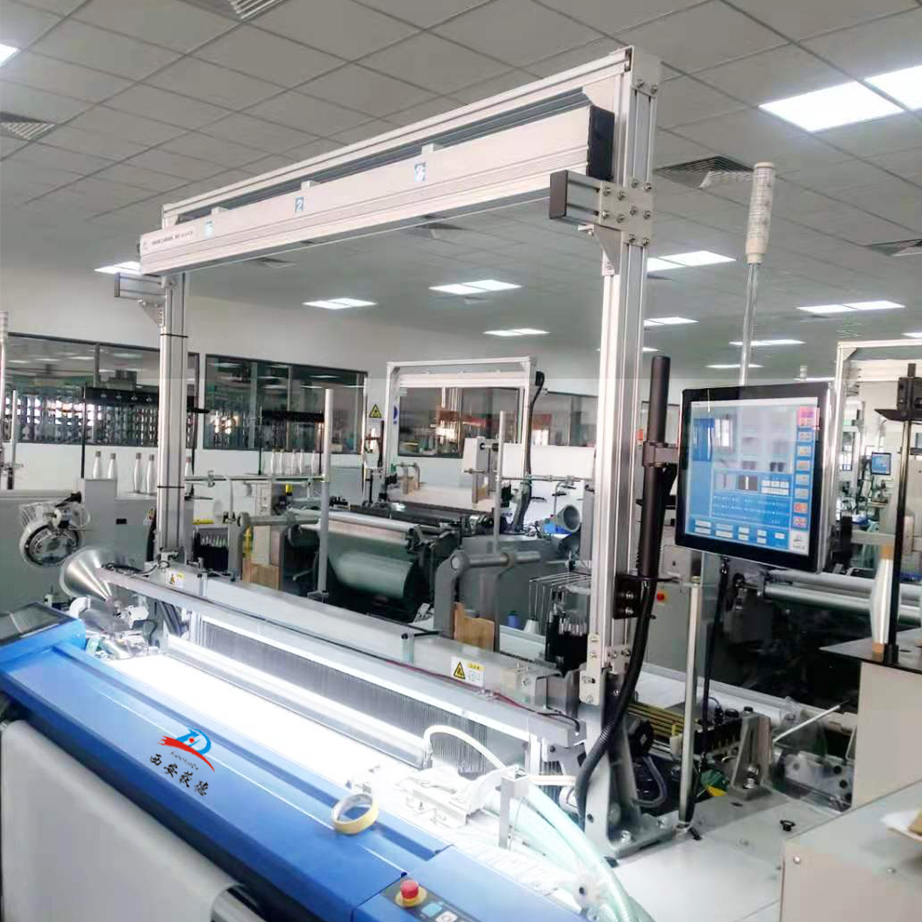 織機疵點在線檢測系統(tǒng)安裝在織機織口部位,對織物進行連續(xù)不間斷圖像檢測,及時發(fā)現各種疵點,對嚴重的織疵,停機告警并由人工處理,對可忍受的紗疵做統(tǒng)計和記錄,以作為等級評定的原始數據,這樣可大程度的減少疵點對最終織物的影響,甚至可以做到織出的布就是合格品,不用再驗布和修布,可以在上位機打印或拷貝本卷布的數據文件,直接出廠,減少流程,降低成本。