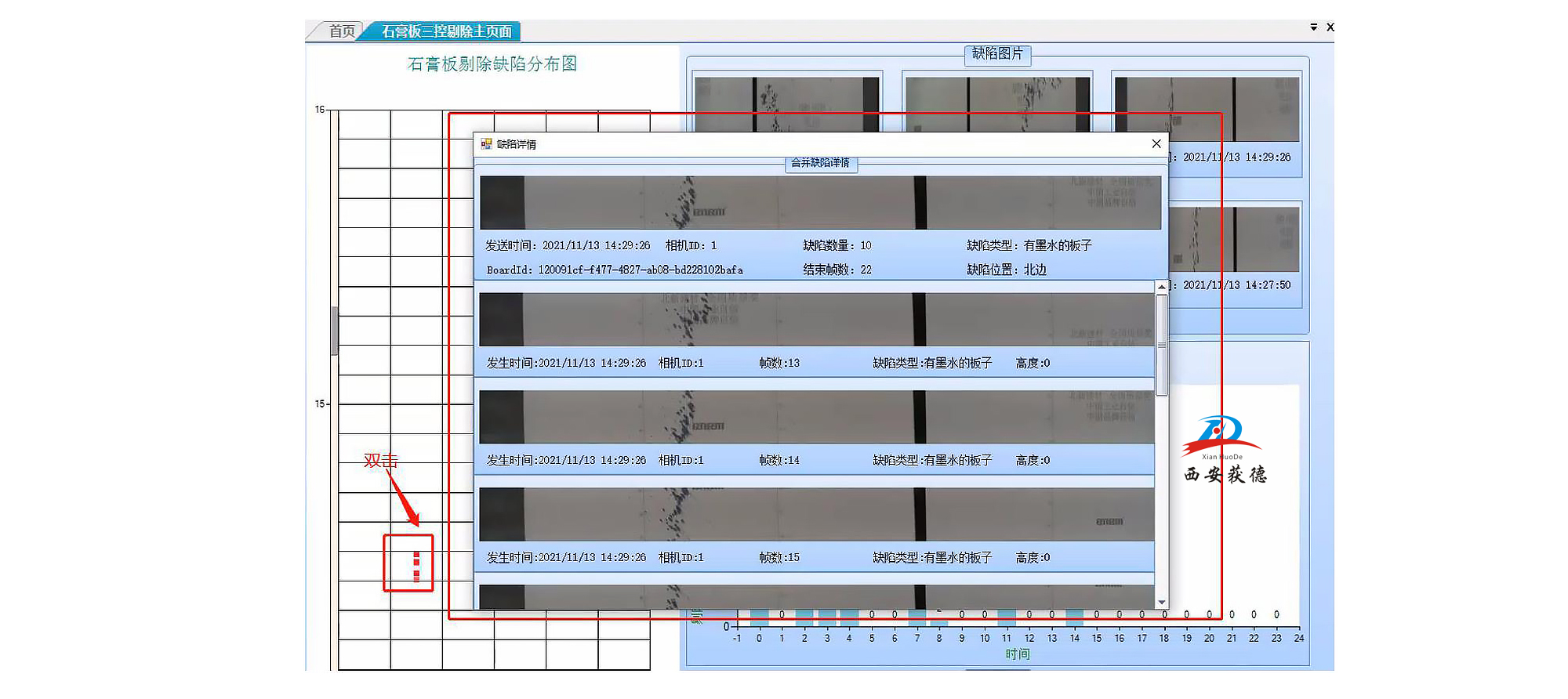 1、自動識別板子ID,讀取數(shù)據(jù)庫里該石膏板的缺陷信息;